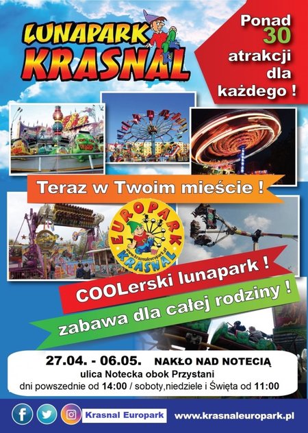 Po raz kolejny w kwietniu do Nakła przyjedzie Europark Krasnal, czyli ponad 30 atrakcji dla #każdego, w tym Break Dancer, Project 1, Hollywood, Kolejka Górska Dragon i Autodrom.