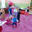 Następnie potańczyliśmy z książkami na głowach. Dzieci w dużym skupieniu robiły obroty i podskoki. W nagrodę za super współpracę otrzymały słodkości.