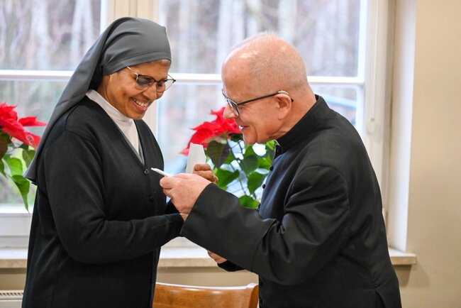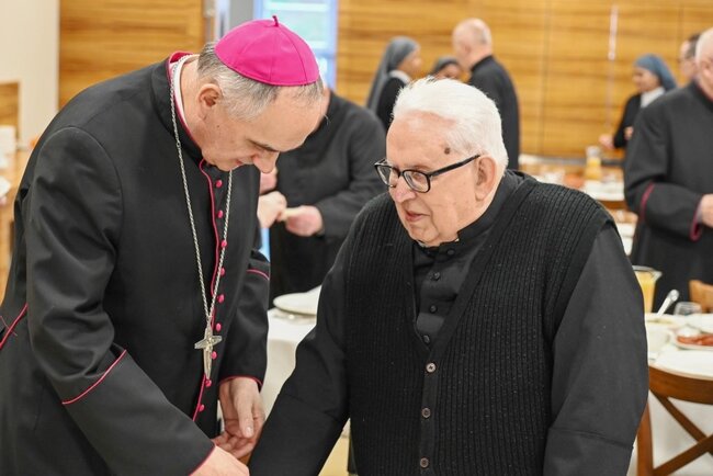 Z kapłanami, siostrami i pracownikami miejsca spotkali się biskupi – ordynariusz i senior Jan Tyrawa. -Przychodzi Maleńka – jakże Wielka Miłość. Przychodzi przytulić każdego z nas i powiedzieć szeptem do naszego ucha, wypowiadając nasze imię, kocham Ciebie, jesteś mi potrzebny, jesteś dla mnie ważny – mówił dyrektor Caritas Diecezji Bydgoskiej, ks. prałat Wojciech Przybyła, który przywitał zebranych.