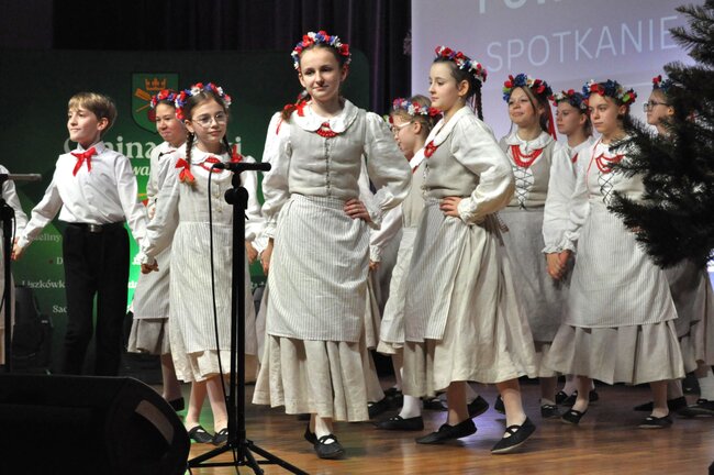 Następnie na scenę wkroczył Dziecięcy Zespół Folklorystyczny „Jabłoneczka” działający przy Gminnym Ośrodku Kultury w Sadkach pod kierunkiem Eweliny Gondek, który zaprezentował bogaty program artystyczny.