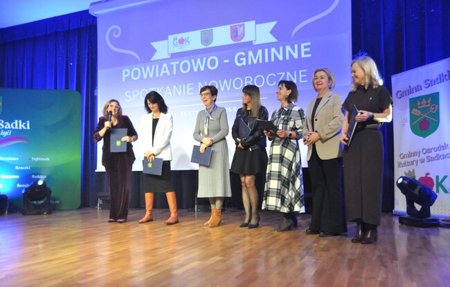 Po występie głos zabrał wójt gminy Sadki Michał Piszczek, który podkreślił czas intensywnej pracy, rolę współpracy, dziękował i złożył uczestnikom noworoczne życzenia. Gmina Sadki również przygotowała prezentację podsumowującą inwestycje przeprowadzone w 2025 roku. Kolejnym punktem było podsumowanie przez dyrektor Joannę Brzozowską całorocznych działań Gminnej Biblioteki Publicznej w Sadkach. Uczestnicy mieli także możliwość obejrzenia prezentacji przygotowanej przez Gminny Ośrodek Kultury w Sadkach. Po podsumowaniach, okolicznościowe przemówienie wygłosiła poseł na Sejm RP Iwona Kozłowska.