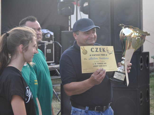 Tego dnia wszyscy czekali na występy reprezentacji sołectw, które przyjechały na boisko w Sadkach, by powalczyć o zwycięstwo w tegorocznej edycji zawodów. Na miejscu zameldowało się 7 ekip, które rywalizowały w 6 konkurencjach – najwięcej emocji dostarczyła ta, w której reprezentantki każdego sołectwa wykonywały rzuty karne do bramki dzielnie strzeżonej przez nikogo innego, jak samego wójta. Mimo dobrej postawy włodarza gminy i wielu obronionych przez niego strzałów, musiał on kilkukrotnie uznać wyższość zawodniczek. Ponadto w ramach pozostałych konkurencji, uczestnicy musieli między innymi pchać oponę na czas, pozbyć się dziur w workach oraz szukać monet w wiadrach wypełnionych po brzegi ziarnami. Po zliczeniu wszystkich punktów wyłoniono zwycięzcę, którym okazało się sołectwo Liszkówko. Oprócz pamiątkowych dyplomów i pucharów, sołectwa otrzymały również nagrody finansowe. Końcowa klasyfikacja turnieju prezentuje się następująco