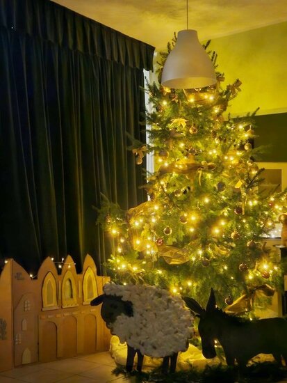 Spotkanie rozpoczęło się pięknym przedstawieniem jasełkowym przygotowanym przez wychowanki pod opieką Panie Rentę Zmarzły i Emilii Grzeszczak oraz Pana Jerzego Makowskiego. Jasełka wprowadziła wszystkich w wyjątkowy klimat Bożego Narodzenia, niosąc ze sobą przesłanie dobra, nadziei i zatrzymania się na chwilę w codziennym biegu.