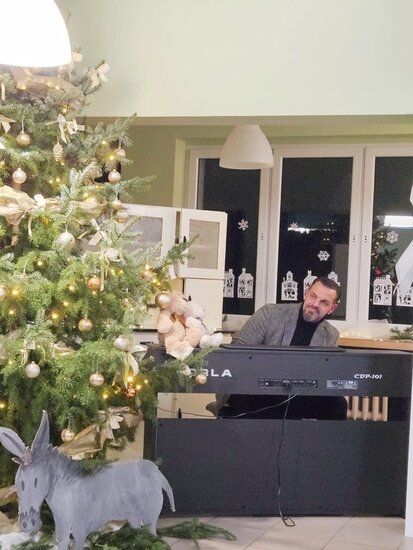 Podczas wieczoru nie zabrakło wspólnego dzielenia się opłatkiem oraz składania płynących prosto z serca życzeń. Wyjątkowym akcentem było wspólne kolędowanie przy muzyce na żywo, którą zapewnił zaprzyjaźniony z placówką Pan Michał Gacka. Razem śpiewali zaproszeni goście, pracownicy, wychowawcy, nauczyciele. Były to chwile radości, wzruszenia, ale także momenty zadumy i nostalgicznych refleksji.