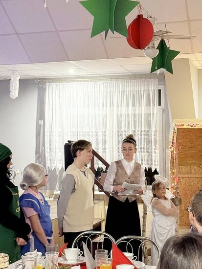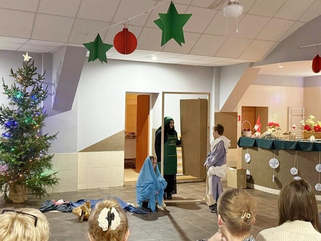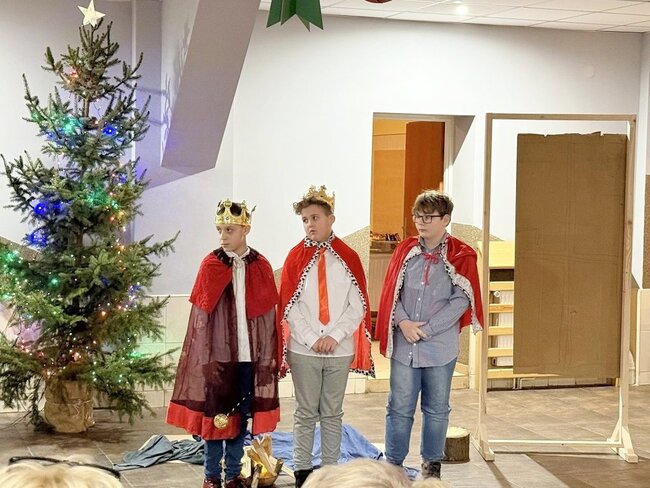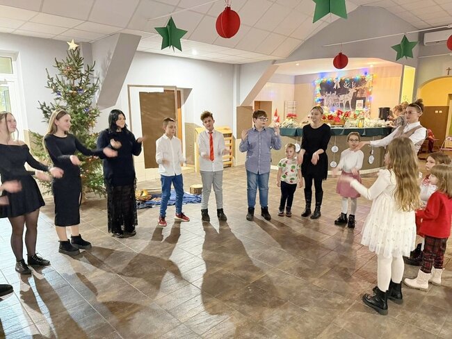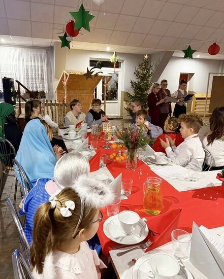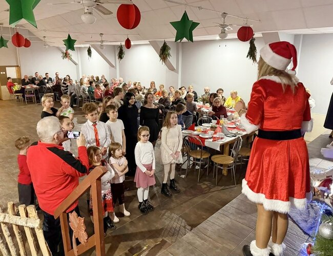 Dzieci wraz z sołtysem przygotowali jasełkę, podczas której wybrzmiały polskie kolędy. Po życzeniach podano tradycyjne, wigilijne potrawy oraz domowe ciasto. W oczekiwaniu na Świętego Mikołaja dzieci przygotowały piosenkę wraz z układem tanecznym oraz ubrali choinkę. To był wyjątkowy wieczór, który zgromadził w naszej świetlicy wielu naszych mieszkańców z rodzinami.