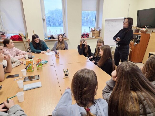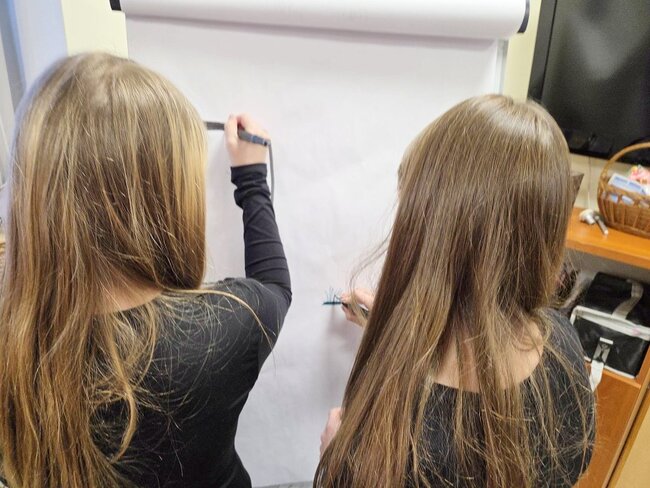 Uczestniczki spotkania starały się wymienić w jakich sytuacjach mamy do czynienia ze sztuczną inteligencją. W dzisiejszych czasach spotykamy ją w wielu miejscach, czasem trudno jest stwierdzić, czy to jeszcze wytwór człowieka,  czy już nie. Musimy do wielu rzeczy podchodzić z czynnością,  by nie dać się zwieść nowoczesnym technologiom. Zastanawialiśmy się w jaki sposób korzystać z niej, by nie zabijać w sobie kreatywności.