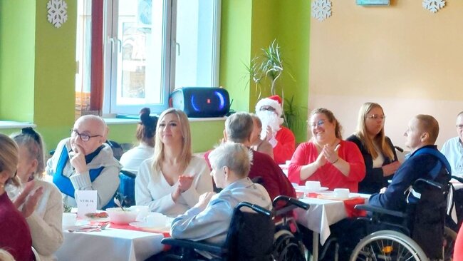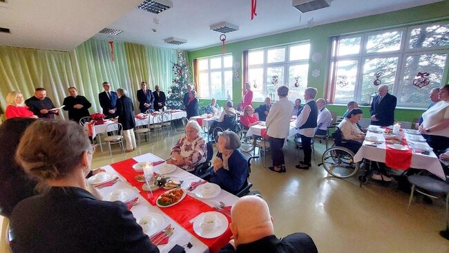 Były życzenia, łamanie się opłatkiem oraz odwiedziny Gwiazdora, który przy współpracy z "Święty Mikołaj dla Seniora" dostarczył prezenty Seniorom.