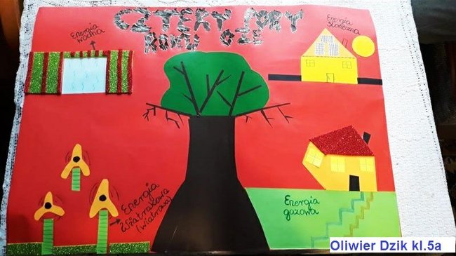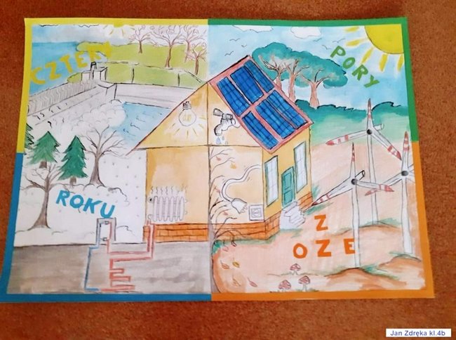 Hanna Król-Synoradzka przewodnicząca,Lucyna Pufal członek, Krzysztok Kotarak członek, wyłoniło, w myśl regulaminu Konkursu „ Cztery pory roku z OZE”, trzy prace plastyczne, które będą reprezentowały naszą szkołę. Oto zwycięzcy eliminacji szkolnych: Justyna Gaca, Jan Jakub Zdręka, Szymon Dombetzki.