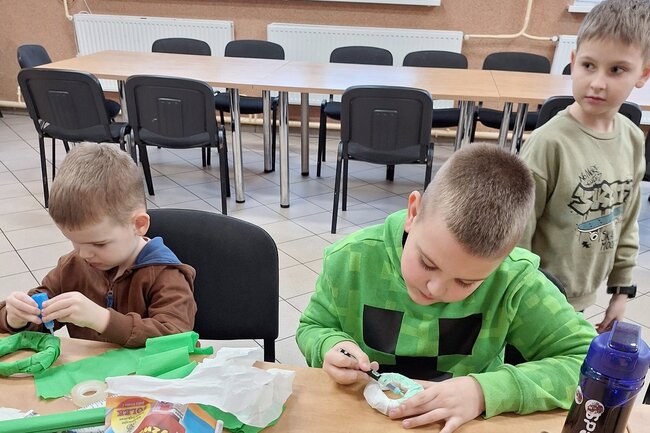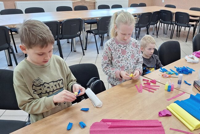 W zeszłym tygodniu odbyły się kolejne zajęcia w # świetlicy wiejskiej w Śmielinie. Tym razem dzieci chętnie pracowały z gazetami i krepą.