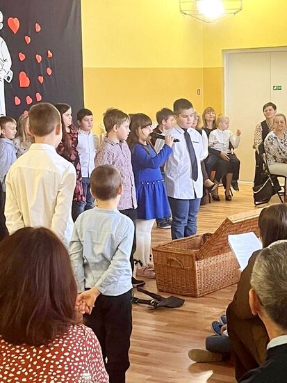 Frekwencja była naprawdę spora, jednak na szczęście udało się wszystkich pomieścić i stworzyć ciepłą, rodzinną atmosferę. Dzieci zaprezentowały wesoły program artystyczny, pełen piosenek, wierszy i uśmiechu, który wzruszył i rozbawił zgromadzonych dziadków. Wydarzenie było pięknym wyrazem wdzięczności oraz okazją do wspólnego świętowania i radosnych rozmów. W kolejnej części spotkania odbyła się prelekcja na temat zdrowego odżywiania, podczas której p.Lidia Lasik zwróciła uwagę na to, jak za pomocą odpowiedniej diety dziadkowie mogą dbać o swoje zdrowie, dobre samopoczucie i codzienną energię. Serdecznie dziękujemy wszystkim zaangażowanym w przygotowanie tej uroczystości!