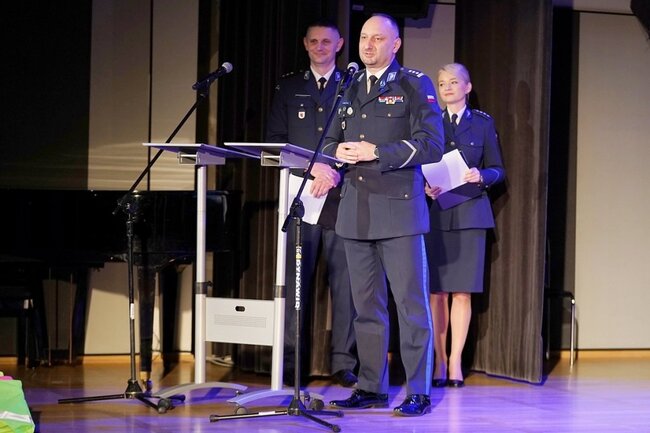Słowa uznania i podziękowania wszystkim laureatom i uczestnikom konkursu przekazał Komendant Wojewódzki Policji w Bydgoszczy inspektor Jakub Gorczyński, przedstawiciele Urzędu Marszałkowskiego w Toruniu Pan Marek Wojtkowskiego i Pani Elżbieta Piniewska oraz Wicewojewoda Kujawsko - Pomorskiego Pan Michał Koniuch.