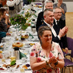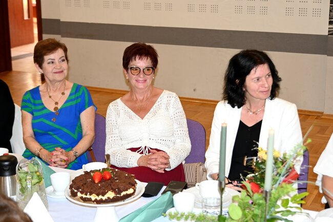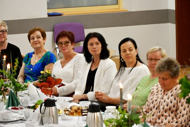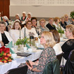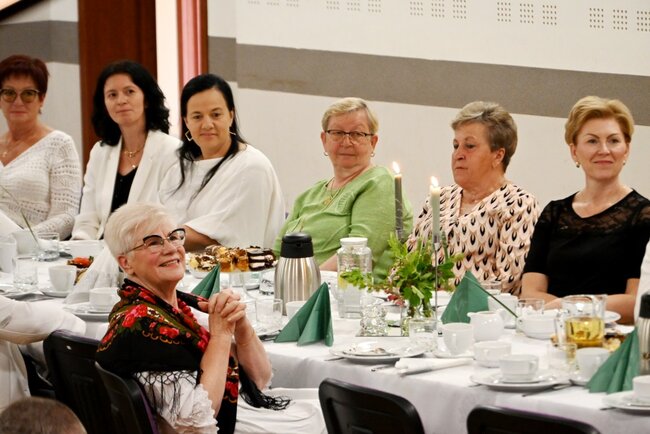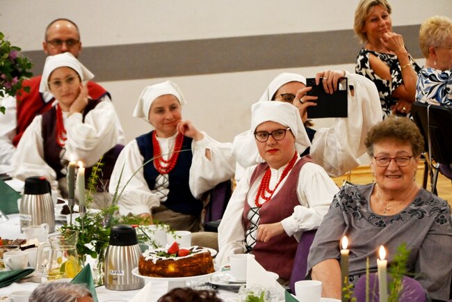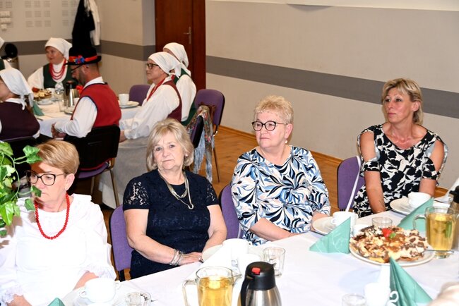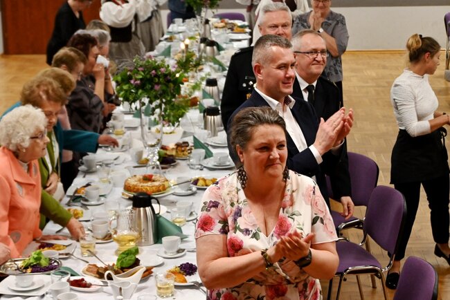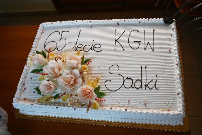 Kolejną częścią uroczystości były podziękowania i gratulacje składane paniom z KGW BIS Sadki przez zaproszonych gości. Na zakończenie, goście zasiedli do stołów i rozpoczęło się biesiadowanie. Oczywiście nie zabrakło również ufundowanego przez mieszkańców jubileuszowego tortu.
