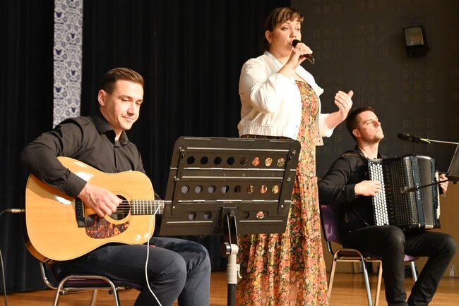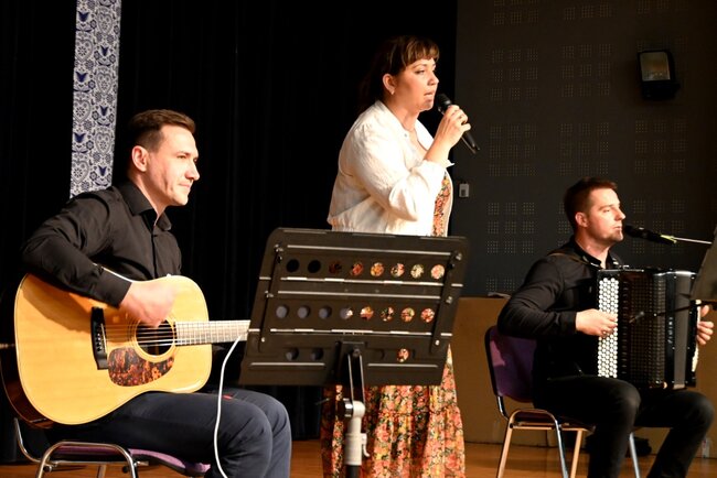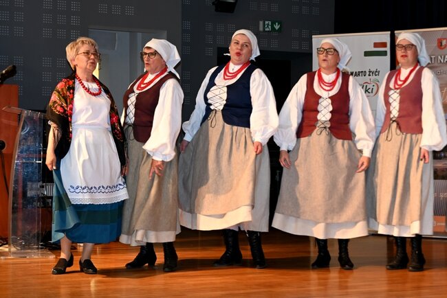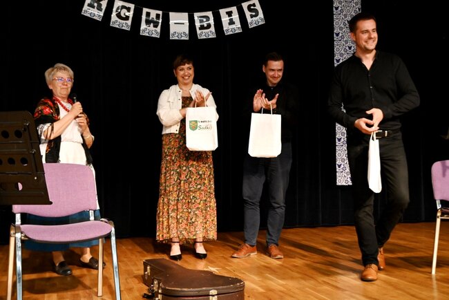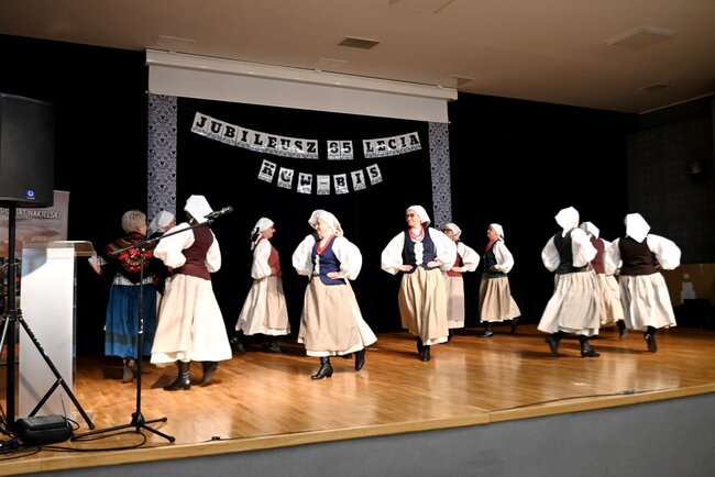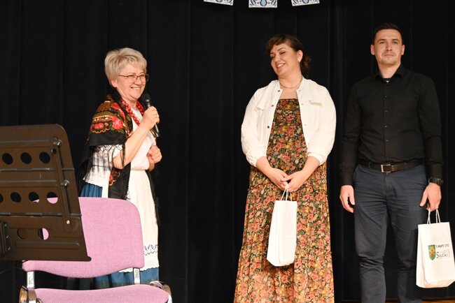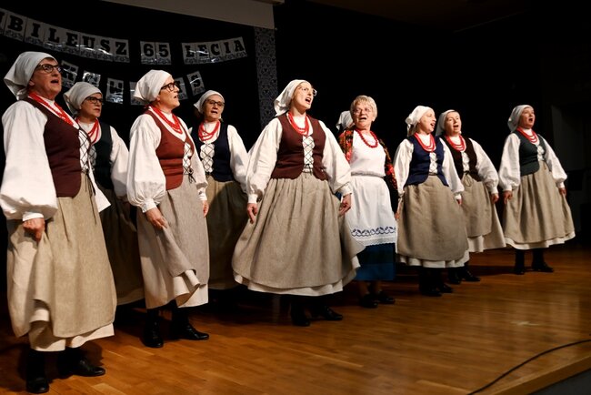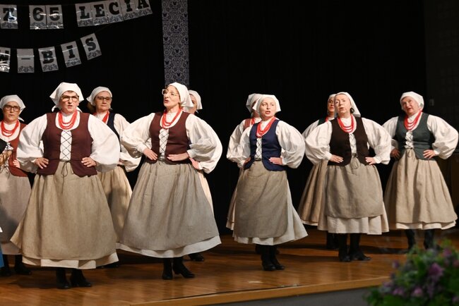 Następnie goście zostali zaproszeni na występ Zespołu Folklorystycznego Sadkowianie, do którego należą m.in. członkinie KGW BIS w Sadkach. Zespół na swoim koncie ma aż 5 nagranych płyt. Ponadto występował poza granicami naszego kraju, w takich państwach jak Czechy czy Węgry. Nie była to jednak jedyna artystyczna atrakcja, która uświetniła jubileuszowe obchody. Tuż po Sadkowianach, na scenie pojawił się zespół UśmiechNęci w składzie: Rafał Chmiel, Marcin Bączkowski oraz Ada Rychwalska. Nie obyło się bez wspólnego śpiewania - w tym także tradycyjnego "sto lat".