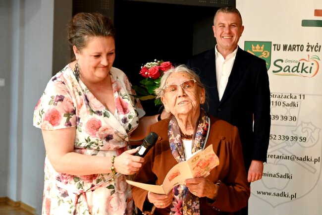 Po powitaniu przybyłych na uroczystość gości, odczytano krótki rys historyczny KGW BIS w Sadkach, sporządzony przez jego przewodniczącą Irenę Dondziak. W dalszej kolejności swój wiersz pt. "Smutki i radości objawów starości" odczytała Małgorzata Posieczek.