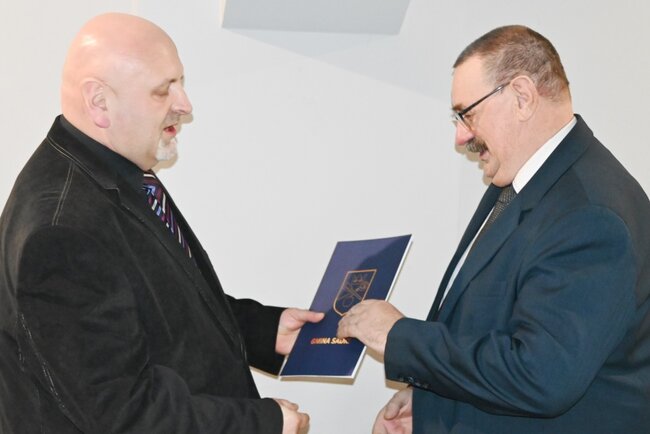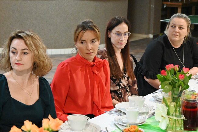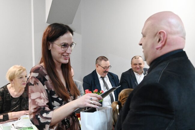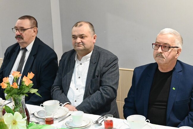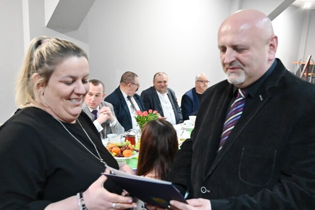 Zanim wszyscy zasiedli do wspólnego stołu, wójt Michał Piszczek w towarzystwie swojego zastępcy Mariusza Czyża złożyli sołtysom najserdeczniejsze życzenia w dniu ich święta oraz wręczyli im skromne upominki.