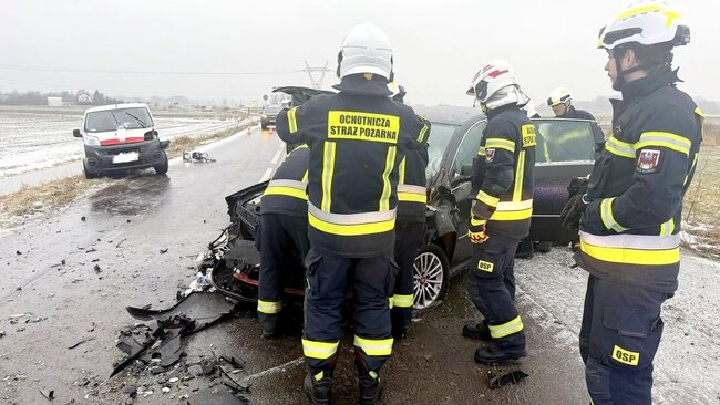 Aby wydostać kierowcę jednego z rozbitych pojazdów, strażacy musieli użyć specjalistycznego sprzętu hydraulicznego.