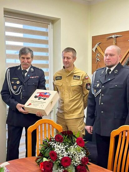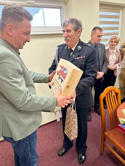 Spotkanie miało szczególnie podniosły charakter, ponieważ było okazją do złożenia serdecznych podziękowań Komendantowi Sławomirowi Murawskiemu z okazji zakończenia wieloletniej służby w strukturach Państwowej Straży Pożarnej.