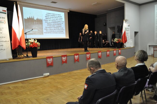 Obchody rozpoczęły się mszą świętą odprawioną w kościele pw. św. Wojciecha w Sadkach. Następnie uczestnicy udali się na cmentarz parafialny, gdzie odbył się Apel Pamięci. Dalszą część uroczystości zorganizowano w sali widowiskowej Gminnego Centrum Administracyjno-Kulturalnego w Sadkach. Tam bogaty program artystyczny zaprezentowali uczniowie Szkoły Podstawowej w Sadkach.