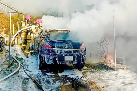 (czytaj więcej)Opel w ogniu. Auto spłonęło doszczętnie