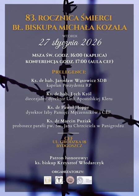 27 stycznia w Centrum #Edukacyjno-Formacyjnym przy ul. Grodzkiej 18 w Bydgoszczy odbędzie się wydarzenie upamiętniające 83. rocznicę śmierci bł. biskupa Michała Kozala – współpatrona diecezji bydgoskiej.