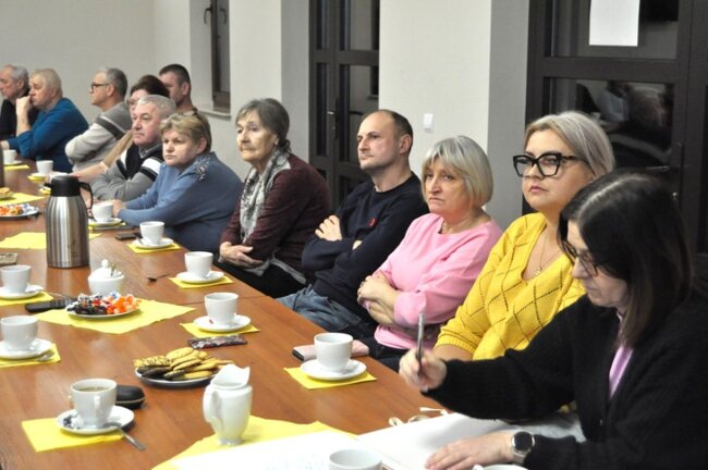 Następnie kierownik Gminnego Ośrodka Pomocy Społecznej w Sadkach, Katarzyna Nowak, przedstawiła działalność placówki oraz programy, w których mieszkańcy mogą wziąć udział. Wójt Michał Piszczek omówił temat gospodarowania odpadami w gminie, wskazując związane z tym problemy i planowane zmiany, w tym m.in. godziny otwarcia PSZOK.