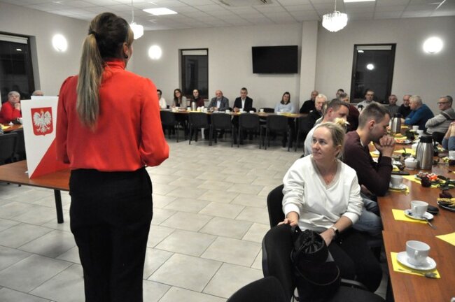 W efekcie zdecydowano o przejściu do dalszej części zebrania i powrocie do wyboru sołtysa na jego zakończenie. W międzyczasie kierownik referatu inwestycji w sadkowskim urzędzie, Beata Przywecka, przedstawiła prezentację ukazującą zrealizowane w 2025 roku inwestycje na terenie gminy oraz plany na bieżący rok.
