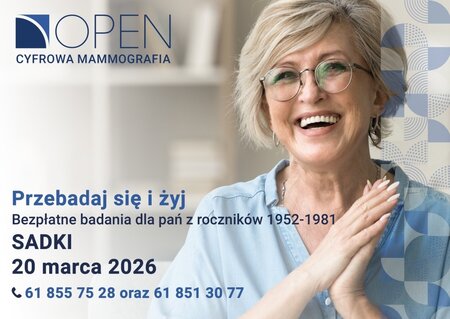 W dniu 20-03-2026 w Sadkach odbędą się# bezpłatne badania mammograficzne realizowane przez firmę Ośrodek Profilaktyki i Epidemiologii Nowotworów S.A. w Poznaniu.