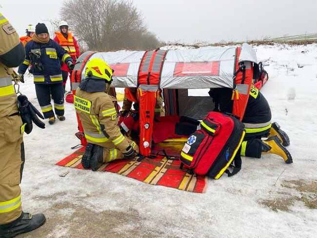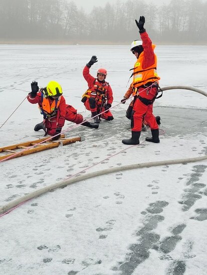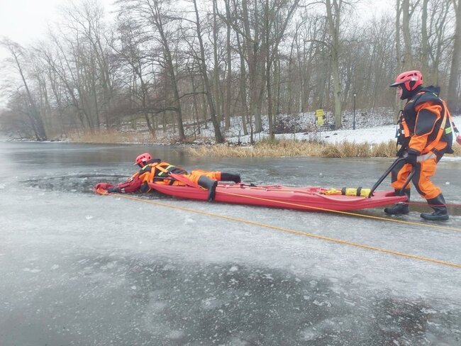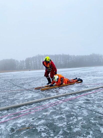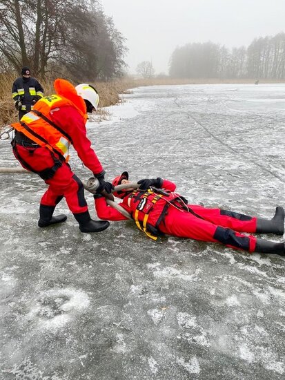 Ćwiczenia z udziałem jednostek OSP. Ratownictwo lodowe