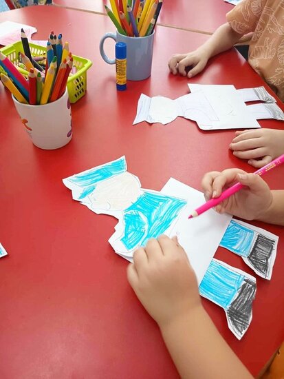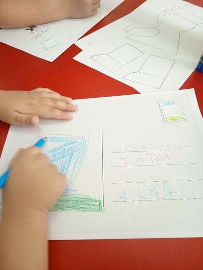 Zajęcia rozpoczęły się od rozmowy, podczas której dzieci dzieliły się swoimi doświadczeniami związanymi z wysyłaniem listów i paczek. Przedszkolaki opowiadały, kto przynosi do domu listy oraz w jaki sposób można wysłać list. Wspomnieliśmy także troszeczkę o historii, w jaki sposób kiedyś wysyłano pocztę. Wspólnie omówiliśmy zasady pisania listu, wyjaśniliśmy, kto to adresat i nadawca. Dzieci bardzo aktywnie uczestniczyły w dyskusji.
