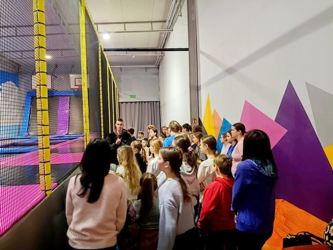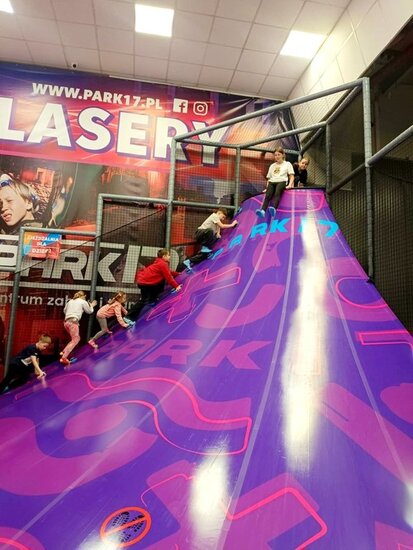 Celem wyprawy był park trampolin- Park 17, gdzie na uczestników czekała solidna dawka ruchu i dobrej zabawy! Młodsi uczestnicy mogli do woli korzystać z Małpiego Gaju, natomiast na starszych czekał basen z gąbkami, ściana wspinaczkowa oraz wiele innych atrakcji. Skoki i akrobacje sprawiły, że uśmiechy nie schodziły z twarzy dzieci. W drodze powrotnej zrobiliśmy jeszcze przystanek na obiad w McDonald's — bo po tylu atrakcjach apetyt dopisywał wszystkim!
