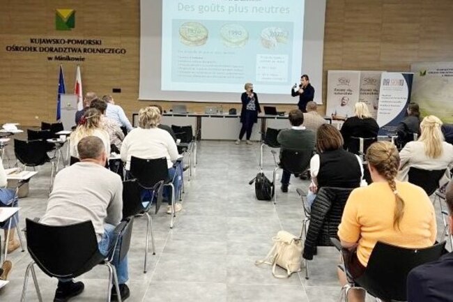 Następnie głos zabrał Sébastien Roustel, autor wspomnianego poradnika i uznany ekspert w dziedzinie serowarstwa. W swoim wystąpieniu skupił się na specyfice produkcji serów miękkich, zwłaszcza na konieczności jednoczesnej regulacji procesu ukwaszania i odsączania masy serowej. Omówił również najczęstsze wady serów miękkich. Wskazał ich przyczyny, pierwsze sygnały ostrzegawcze oraz możliwe środki zaradcze. Prezentacja spotkała się z dużym zainteresowaniem uczestników, którzy chętnie zadawali pytania i dzielili się swoimi doświadczeniami.