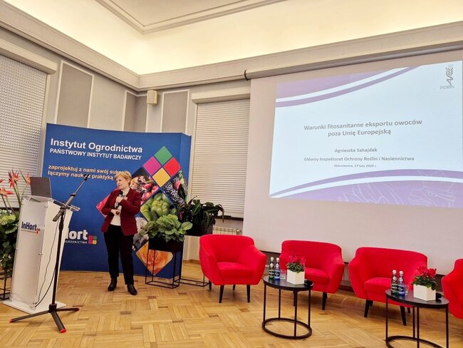 Przedstawiciele Głównego Inspektoratu #Ochrony Roślin i Nasiennictwa uczestniczyli w 64. Ogólnopolskiej Konferencji Ochrony Roślin Sadowniczych organizowanej przez Instytut Ogrodnictwa - PIB pod hasłem „Sadownictwo 2026 - klimat, bezpieczeństwo i wymogi rynku”. W wydarzeniu udział wzięły Magdalena Makowska - Główny Inspektor Ochrony Roślin i Nasiennictwa oraz Agnieszka Sahajdak - Dyrektor Biura Nadzoru Fitosanitarnego i Współpracy Międzynarodowej GIORiN, która zaprezentowała temat Warunki fitosanitarne eksportu owoców poza Unię Europejską i wzięła udział w debacie poświęconej wyzwaniom sezonu 2026 w ochronie roślin sadowniczych.