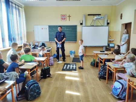 Uczniowie usłyszeli też kilka słów, jak właściwie zachowywać się w trakcie zabawy. Mundurowi przestrzegali przed osobami obcymi, informując jednocześnie jakie zagrożenia mogą spotkać tych wszystkich, którzy nie zastosują się do przekazanych rad.