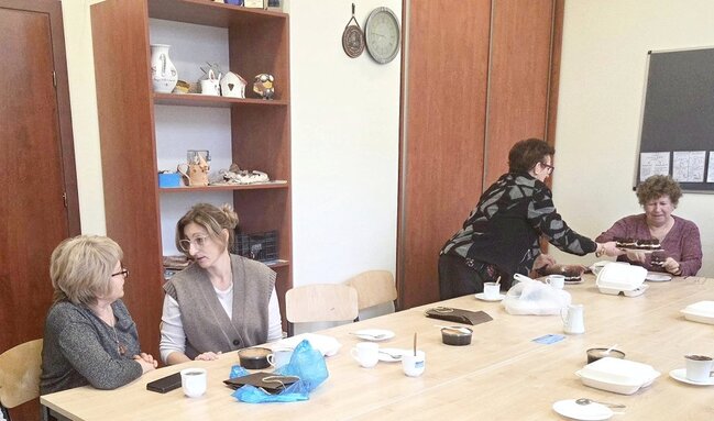 Tym razem Panie miały okazję zjeść wspólny obiad i skosztować pysznego ciasta Pani Mirki (dziękujemy). Nie brakowało wspominania projektowych zajęć oraz opowiadania o tym, co działo się po projekcie. Z ogromną przyjemnością słuchało się wspomnień Pań. Sadki widziane ich oczami kilka lat temu są pięknym miejscem. A ich anegdoty rodzinne dawały wiele powodów do śmiechu. W takim gronie po prostu chce się przebywać. Dlatego kolejne spotkanie organizujemy już w lutym.