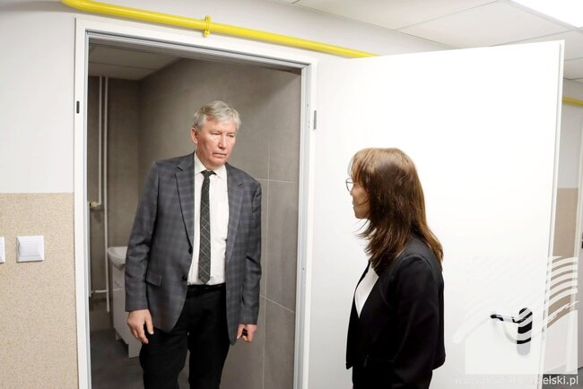 23 lutego odbył się odbiór zmodernizowanego zaplecza# magazynowego w internacie I Liceum Ogólnokształcącego im. Bolesława Krzywoustego w Nakle nad Notecią. Inwestycja objęła kompleksową modernizację pomieszczeń piwnicy, które stanowią zaplecze stołówki i kuchni internatu.