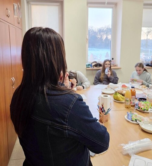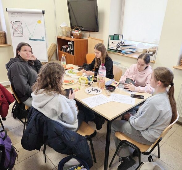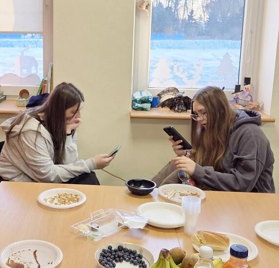 Prowadząca spotkanie podkreślała jak ważne jest stosowanie mocnych haseł. A z internetu musimy korzystać z pełną świadomością. Nie zabrakło smacznego zdrowego poczęstunku podczas zajęć.