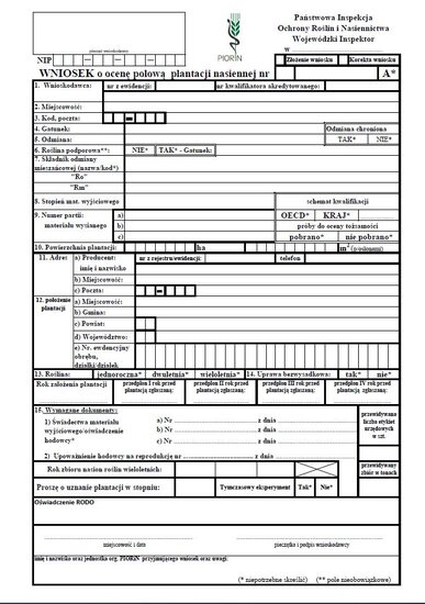 • Wniosek o ocenę polową plantacji nasiennej.