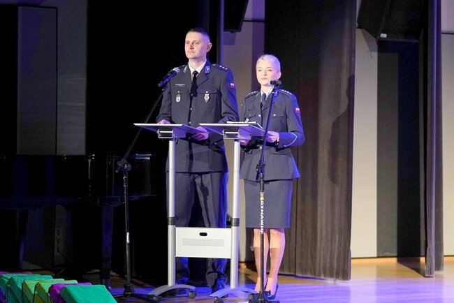 Słowa uznania i podziękowania wszystkim laureatom i uczestnikom konkursu przekazał Komendant Wojewódzki Policji w Bydgoszczy inspektor Jakub Gorczyński, przedstawiciele Urzędu Marszałkowskiego w Toruniu Pan Marek Wojtkowskiego i Pani Elżbieta Piniewska oraz Wicewojewoda Kujawsko - Pomorskiego Pan Michał Koniuch.