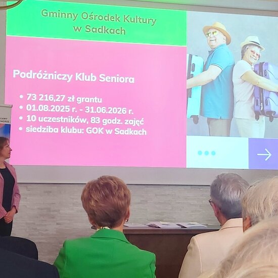 Gminny Ośrodek Kultury w Sadkach otrzymał dofinansowanie na kwotę 73 216.27 złotych. Dzięki udzielonemu grantowi osoby starsze będą mogły zapisać się do PODRÓŻNICZEGO KLUBU SENIORA w Gminnym Ośrodku Kultury w Sadkach i wziąć udział w bezpłatnych zajęciach i wyjazdach.