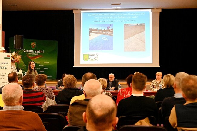 Podczas spotkania pojawiła się również informacja dotycząca planowanych prac w centrum miejscowości. Jak poinformowała sołtys Hanna Czelińska, jeszcze w tym miesiącu rozpoczną się roboty przy tzw. trójkącie w Sadkach. W tym miejscu powstanie swego rodzaju witacz z nazwą miejscowości, który ma stać się nowym elementem wizytówki wsi.