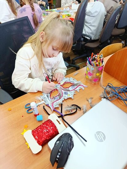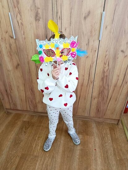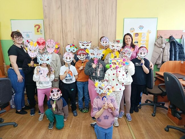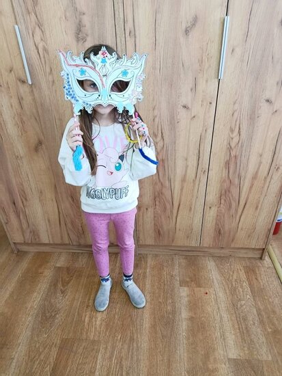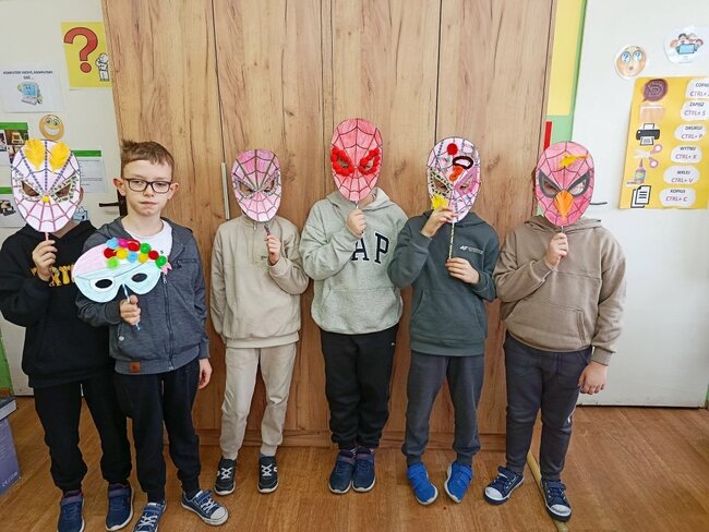 Zajęcia kreatywne były doskonałą okazją do połączenia zabawy z nauką, rozwijania zdolności artystycznych oraz integracji grupy. Uczniowie z dumą prezentowali swoje maski, a spotkanie zakończyło się wspólnym podsumowaniem i rozmową o karnawałowych tradycjach. Powstały maski Supermana, Mario no i oczywiście nie mogło zabraknąć księżniczek.