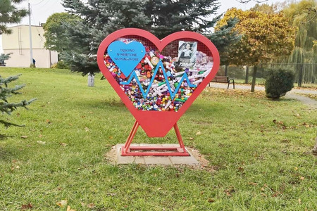 Serduszko do zbierania nakrętek, które pojawiło# się w Dębowie w październiku zeszłego roku, w minionym tygodniu już SZÓSTY raz zostało zapełnione po sam brzeg.