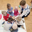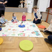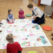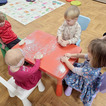 Następnie maluchy mogły zobaczyć, co spada szybciej po pochyłej desce. Łatwo dostrzegły, że piłka zdecydowanie wyprzedza kartonik. Nie mogło zabraknąć elementów muzycznych, a odsłanianie dzwoneczków ukrytych w kartonie dało dużo radości.