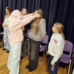 Odgrywanie kolejnych scenek pozwalało na pokazywanie różnych emocji. Śmiech mieszał się ze smutkiem, a reakcje zmieniały się jak w kalejdoskopie. Nie zabrakło ćwiczeń gdzie zaufanie i współdziałanie pozwalało osiągnąć sukces.
