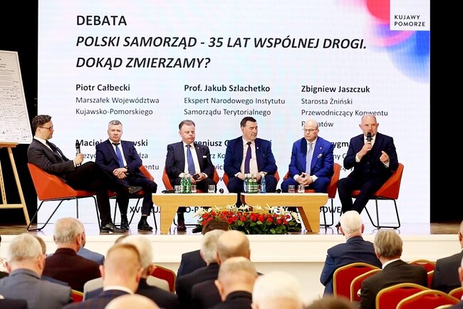 W zamykającej wydarzenie debacie „Polski samorząd – 35 lat wspólnej drogi. Dokąd zmierzamy?” uczestniczyli marszałek Piotr Całbecki, prof. Jerzy Stępień, prof. Jakub Szlachetko z Narodowego Instytutu Samorządu Terytorialnego, prezydent Grudziądza Maciej Glamowski, starosta żniński Zbigniew Jaszczuk, burmistrz Kowala Eugeniusz Gołembiewski i wójt gminy Cekcyn Jacek Brygman.