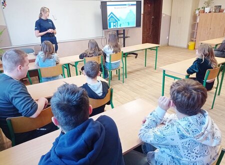 Spotkanie uczniów z policjantką. O bezpieczeństwie w czasie ferii