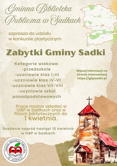 Gminna Biblioteka Publiczna w Sadkach zorganizowała konkurs plastyczny o zabytkach w naszej gminie, dlatego to właśnie te wiekowe budynki były tematem naszych zajęć. Uczestnicy mieli okazję nie tylko poznać historię lokalnych perełek architektury, ale również wykorzystać swoją wyobraźnię, tworząc piękne prace.
