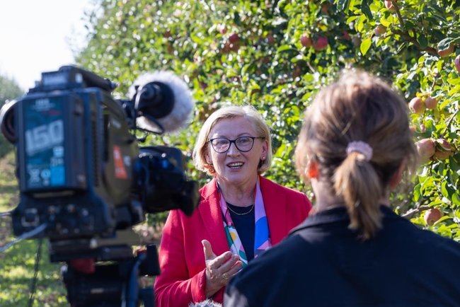 28 września w sadzie jabłkowym w gospodarstwie Andrzeja Jarosiewicza w Nowych Olszynach w powiecie płońskim odbyła się konferencja prasowa z udziałem Sekretarza Stanu w Ministerstwie Rolnictwa i Rozwoju Wsi Rafała Romanowskiego, Zastępcy Dyrektora Generalnego Krajowego Ośrodka Wsparcia Rolnictwa Małgorzaty Gośniowskiej-Koli i Doroty Kruczyńskiej, eksperta Instytutu Ogrodnictwa – Państwowego Instytutu Badawczego w Skierniewicach.