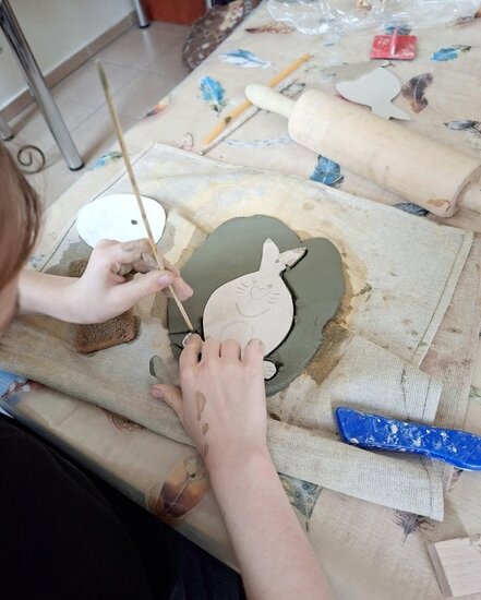 Tematem przewodnim motywy wielkanocne. Zajęcia ceramiczne