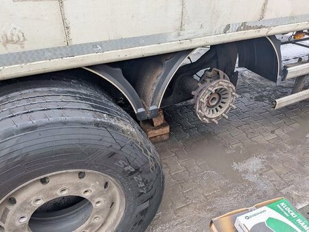 Transport trocin. Brak tarczy hamulcowej w naczepie
